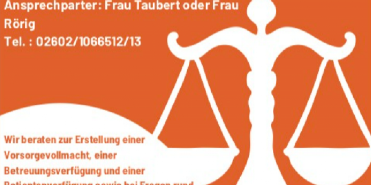 KOSTENFREIE Beratung zur Erstellung einer Vorsorgevollmacht und einer Betreuungs- oder Patientenverfügung sowie Beratung zu Fragen rund um die rechtliche Betreuung.