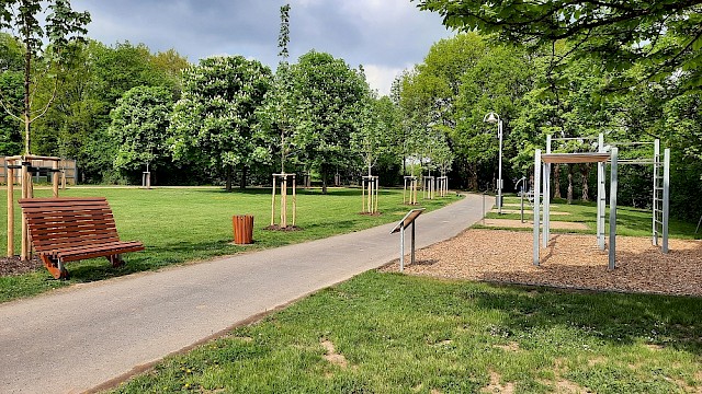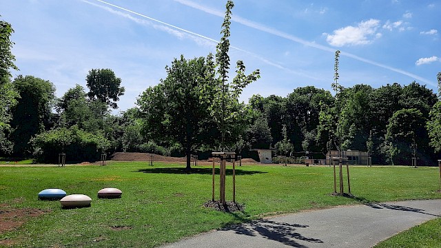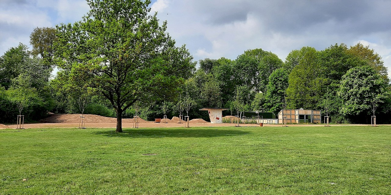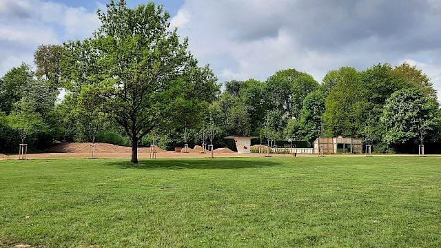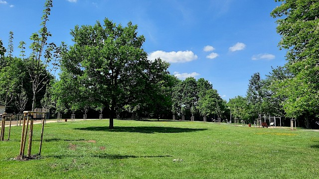 Die weitläufige Wiesenfläche und die Cage-Soccer-Anlage auf dem ehemaligen Hartplatz laden zu verschiedenen Möglichkeiten der Freizeitgestaltung ein (spielen, bolzen, grillen, entspannen…). Parkplätze stehen an der Ostseite des Geländes zur Verfügung.