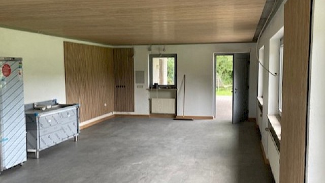 Am Sportlerheim konnten die Arbeiten im Inneren bereits weitestgehend abgeschlossen werden. Alle Lampen im Gebäude wurden auf LED-Technik umgestellt. Grundlegend saniert wurde der Veranstaltungsraum, der wie alle Räume einen neuen Fußboden und zudem eine neue Akustikdecke erhalten hat. In den kommenden Wochen wird nun das Dach des Gebäudes vollständig erneuert, die Photovoltaikanlage installiert und die Wärmepumpe in Betrieb genommen. Mit diesem Bauabschnitt stehen dann neben der Wärmeversorgung auch die Warmwasserversorgung und damit die Duschen im Gebäude wieder zur Verfügung. Der abschließende noch neu anzubringende Sonnenschutz an den Südfenstern rundet dann die Maßnahme ab. Mit den energetischen Maßnahmen kann der Primärenergieverbrauch des Gebäudes erheblich gesenkt werden und wird durch die Einspeisung der Photovoltaikanlage sogar rechnerisch nahe an eine Energieautarkie heranreichen.